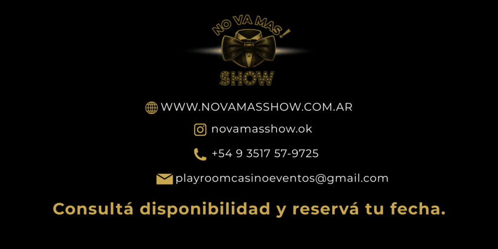 No Va Más Show nació en Córdoba como una propuesta distinta dentro del mundo del entretenimiento: una experiencia que combina lo mejor de un casino de Las Vegas con la diversión de una kermesse. Con croupiers, dolares personalizados, animación en vivo, magia, tarot, catering y una producción cuidada, se transformó en un show innovador para eventos privados, boliches y fiestas temáticas. Creatividad, glamour y juego, todo en un solo concepto que sorprende y deja marca.